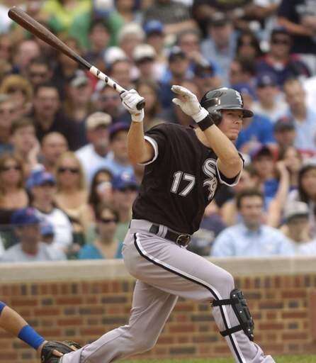 Jermaine Dye watches Derrek Lee's 8th inning home run go into the basket.
