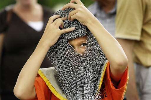 Kir Nagaitsedv, 9, tries on traditional Viking chainmail headgear at the 98th Annual Swedish Midsummer Festival in Geneva Sunday. He is from Geneva and was with his family John Starks | Staff Photographer