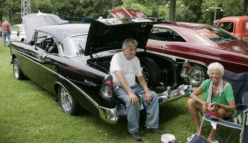 Bruce and Sue Colwell sit with their 1956 Bel Air at the Old Gold Cruisers Father's Day Car show in Batavia on Sunday afternoon. Kevin Sherman | Staff Photographer