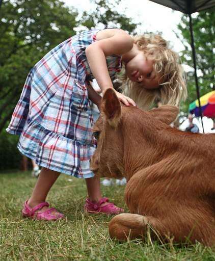 Maya Funk of Naperville, 5, pets a calf at the petting zoo on the third day of Naper Days held in Naper Settlement in downtown Naperville on Sunday, June 21, 2009. Brad Meyer | Staff Photographer