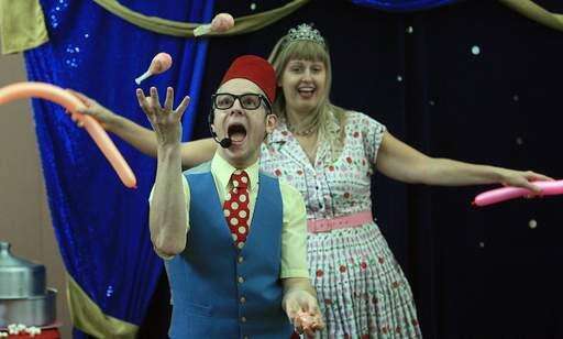 The husband and wife team Smarty Pants and Miss Dina of Chicago entertained kids and parents during a balloon, juggling and comedy show at Lake Villa District Library Thursday afternoon. Steve Lundy | Staff Photographer