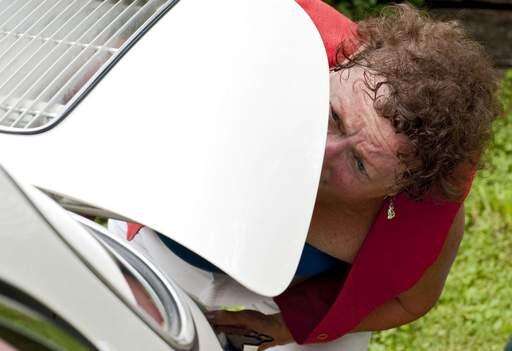 Concour judge Maureen Hutton of Burbank inspects the edges of the engine bay of a 1964 Porsche 356C for dirt at Towner Green in Historic Long Grove for the Concours One event hosted by Porsche Car Clubs of America - Chicago Region. Jason Chiou | Staff Photographer