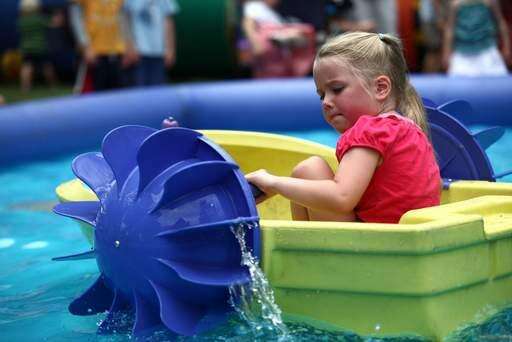 Gabrielle Wolschlog of Aurora, 4, paddles her boat in an inflatable pool at Naper Days held in Naper Settlement in downtown Naperville on Sunday, June 21, 2009. Brad Meyer | Staff Photographer