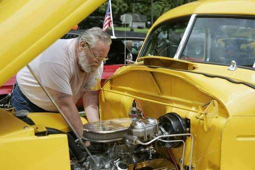 Skip Bannonof Morris checks the oil in his 1939 Hudson during the Old Gold Cruisers Father's Day Car show in Batavia on Sunday afternoon. Kevin Sherman | Staff Photographer
