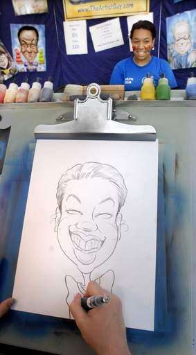 Mariah Sebring, 13, is all smiles as Todd Schaefer sketches a charicature of the Libertyville girl. Known as the "Artist Guy," Schaefer was one of many vendors working at Libertyville Days on Sunday. Vincent Pierri | Staff Photographer