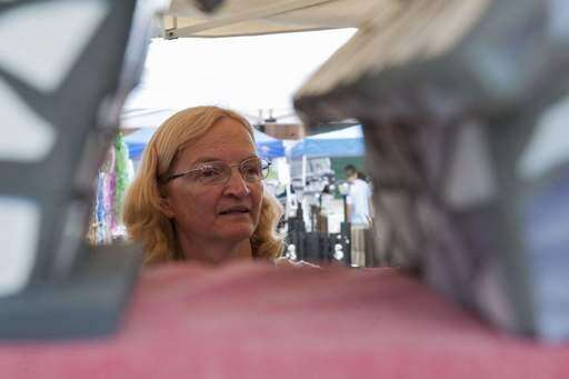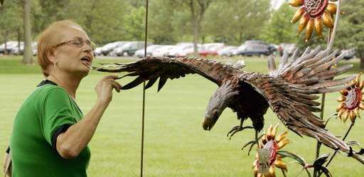 Bonnie Weisz, of Itasca checks out sculptures at Cantigny Park Sunday during Fine Arts Festival in Wheaton. Tanit Jarusan | Staff Photographer