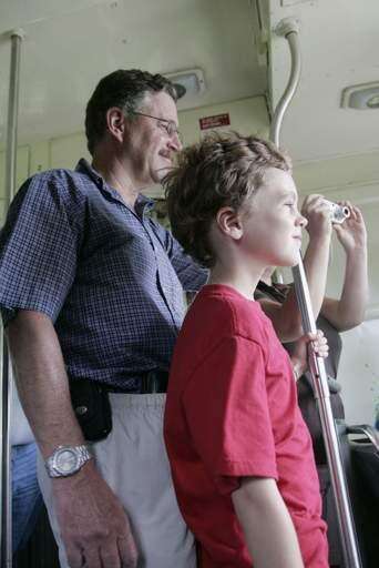 Fernando Ramierez stands with his son Richardo, 8, on the trolley at the Fox Valley Trolley Museum in South Elgin on Sunday afternoon. Fernando and his family are from California and are visiting family in St. Charles this weekend. Kevin Sherman | Staff Photographer