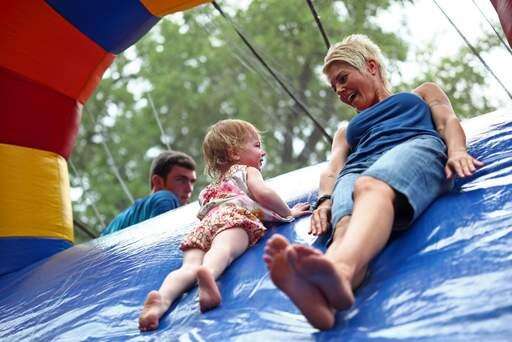 Ava Crowder, 2, and her mom Alba slide down an inflatable slide at Naper Days held in Naper Settlement in downtown Naperville on Sunday, June 21, 2009. Brad Meyer | Staff Photographer