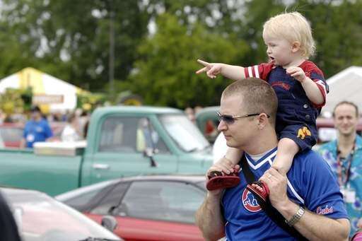 Matt Bickel and his son Cameron, 1 1/2 of Palatine check out some of the cars at the Willow Creek Community Church's annual DadFest in South Barrington. The fest included a car show, live entertainment, food and more. Mark Black | Staff Photographer