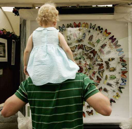 Wheaton resident Ryan Claus and daughter Makenzie,2, butterfly art work Sunday during Fine Arts Festival at Cantigny Park, in Wheaton. Tanit Jarusan | Staff Photographer