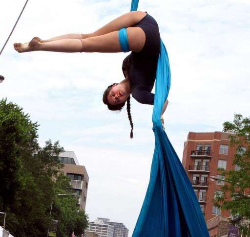 Laura Lippert, with The Aloft Loft, performs aerial acrbotics while hanging from a long piece of silk at the 37th Custer's Last Stand Festival of the Arts in Evanston on Sunday, June 21. George LeClaire | Staff Photographer
