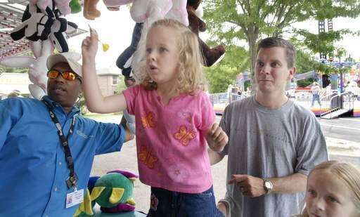 With the intensity of an olympic javelin thrower, four-year-old Jessica Brown hurls a dart at waiting balloons during Libertyville Days on Sunday. Jessica's dad Wayne and sister Kaitlyn, 7 keep their eyes on the toss. Vendor Walter Taylor is at left. Vincent Pierri | Staff Photographer