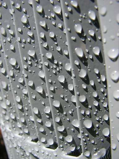 Water droplets form on an air conditioner unit creating interesting patterns and shadows.