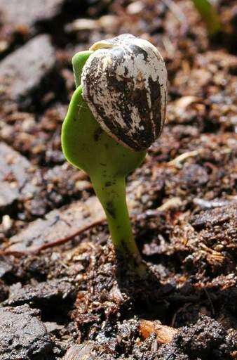This is a photo I took in our garden in Villa Park of a sunflower growing with the seed still on it. Photo by Debbie Dolecki of Villa Park