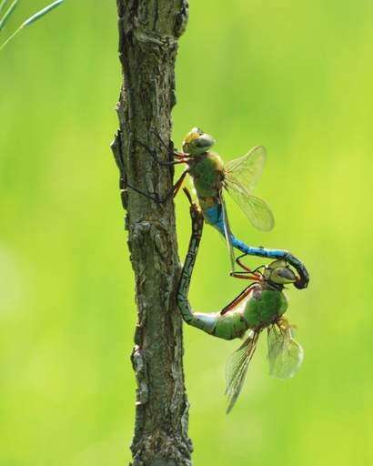 These green darner dragonflies mated while they were flying then they landed on a tree at Crabtree Nature Center in Palatine. Photo by Linda Strickland of Palatine