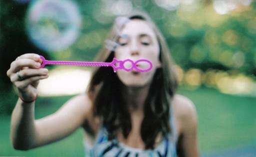 While taking pictures around the neighborhood this week, the photographer captured her sister, Emily, blowing bubbles. Photo by Abby Nierman of Mundelein