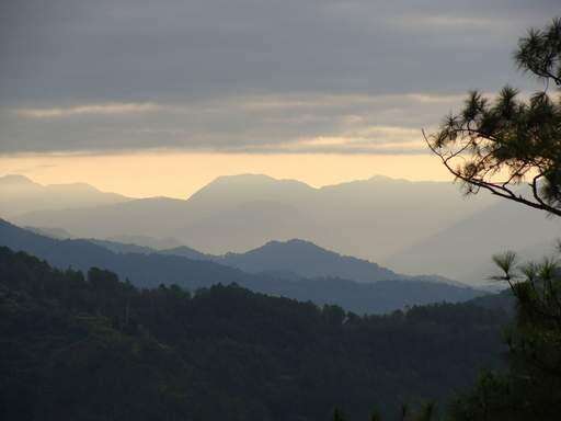 Taken from a hotel window in the Philippines, the sun rises over the haze of the mountains of an area called "Mines View" in a city of Baguio City. Photo by Mark Riekki of Hawthorn Woods