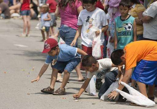 Children swarm a pile of candy thrown out along the parade route Sunday, during the Community Days parade in Mundelein.