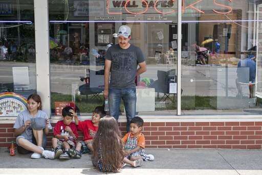 The Hernandez family of Mundelein sits at a storefront awaiting the start of the Community Days parade Sunday.