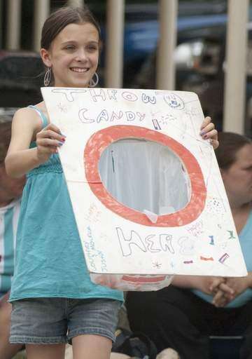 Lexi Ciesla, 11, of Mundelein, holds up a basket for people to throw candy during the Mundelein Community Days parade Sunday. The parade went down Hawley Street.