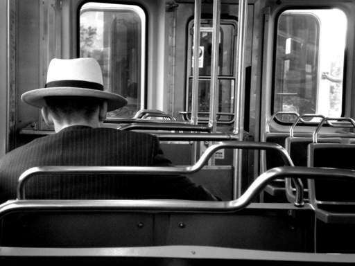 A man sits on the Blue Line train as it makes its way toward O'Hare Airport. Jeff Beaudette of Palatine