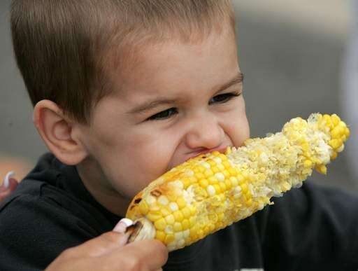 Two-year-old Logan Krusely Anitoch enjoys some corn on the cob Saturday at a summer fest in Anitoch.