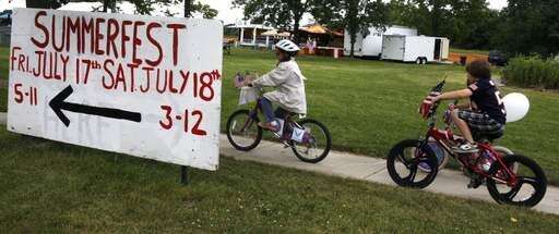 Parents applaud the Grandwood Park Summerfest bike-cycle parade as it rolls into the festival on Saturday in the unincorporated area near Gurnee.