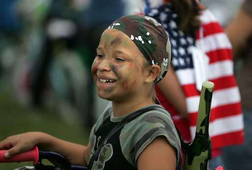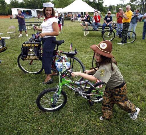 About 30 children rode in the Grandwood Park Summerfest bike-cycle parade on Saturday, with a military theme.