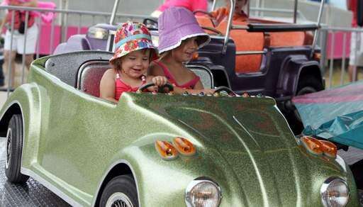 Sisters Addison and Zoey Feekes, of Trevor, Wisc., take a Saturday afternoon drive at Antioch's Taste of Summer Festival on Saturday. The festival continues today.