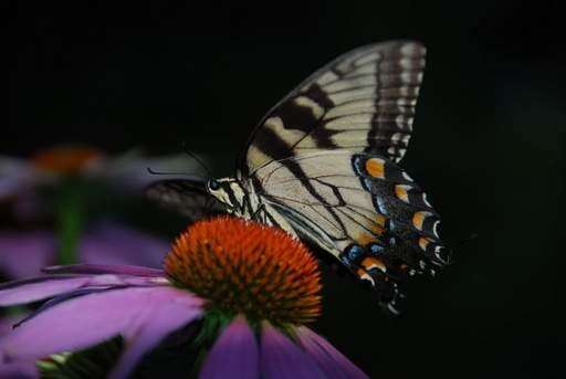 A butterfly lands on a purple coneflower at a garden in Barrington.