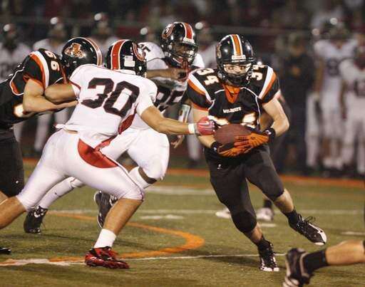 WEEK 2- Carmel's Christian Gaza runs the ball against Libertyville defender Bryan Dickson on Friday night at Carmel in Mundelein.