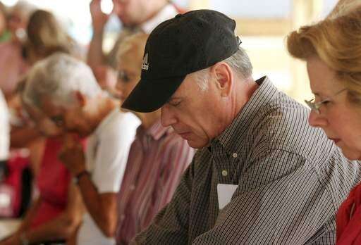 Lloyd Lowe prays during a Sunday worship service Sunday morning at the Lake County Fair in Grayslake. Gilbert R. Boucher II | Staff Photographer