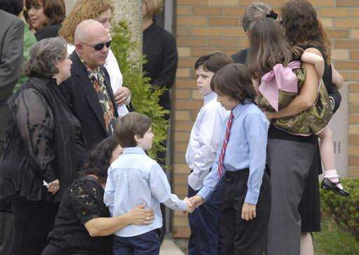 Family and friends console each other before the funeral of Martin Jordan at St. Peter Catholic Church in Geneva on Friday. Laura Stoecker | Staff Photographer