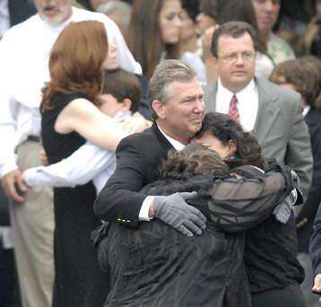 Friends recalled Jordan was a man who not only asked how they were doing, but remembered and helped with their troubles. Jordan's wife, Maureen, and their three children recalled their husband and father the only way they could with heavy hearts. As Jordan's casket was loaded back into the hearse, Maureen Jordan and her three children huddled. Pained looks transformed into tears as the doors closed. Tears became a group hug. And as more relatives and friends joined that hug, it became perhaps the best tribute there could be to the impact Marty Jordan made on all who knew him.