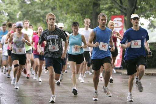 Runners take off at the start of the Bob Leonard 5K Run in St. Charles on Saturday morning.