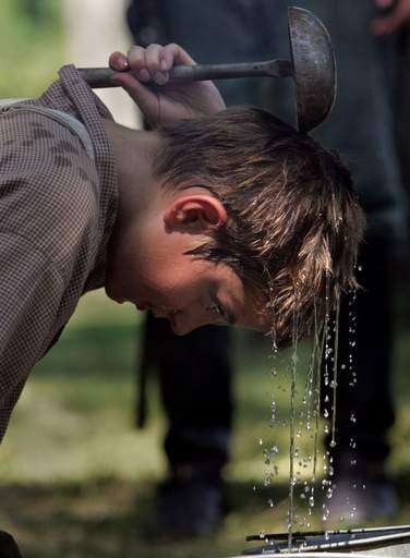 Tom Waliszewski, 10, of Chicago, with the 3rd Tennessee Calvary pours water on his head to stay cool at the civil war living history encampment at the Country Fair and Craft Show at the Methodist Campground in Des Plaines.