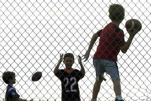 The Arlington Cowboys opening practice session at Buffalo Grove High School kicks off with a few kids warming up their arms by throwing the football before the start of the practice.