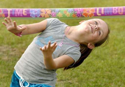 Seven-year-old Kayli Fawbush squirms her way to a win in the Limbo competition at Hoffman Estates Park District's party in the park at High Point Park.