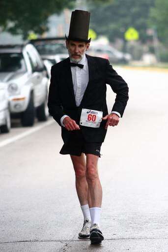 Ray McKinnis of Winfield competes in the 26th annual Winfield Run dressed as Abraham Lincoln on Saturday.