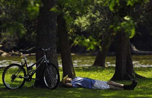 Paul Hough of Geneva takes a break from his bike ride to enjoy the cool breeze and relax under a tree at Fabyan Forest Preserve in Geneva Monday. He said he's on vacation this week.