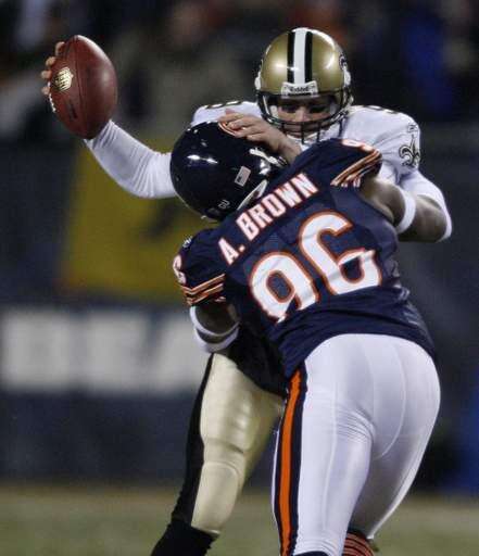 Brown led the team last season with just 6 sacks, 1 more than Ogunleye and Tommie Harris. The 11 sacks by the starting defensive ends was their lowest combined total in the past four years. They haven't had so few since 2004, their first year together with the Bears.