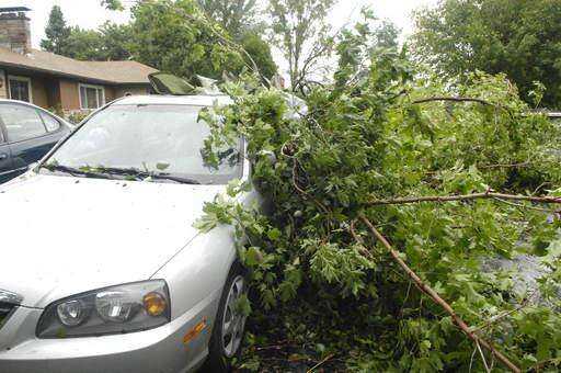On Thursday morning Frank Hudkins ventured out with his chain saw and he and Delores removed the wreckage. They don't know what, if anything, insurance will cover, but Dolores Hudkins is trying her best to stay upbeat.