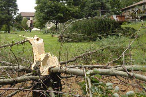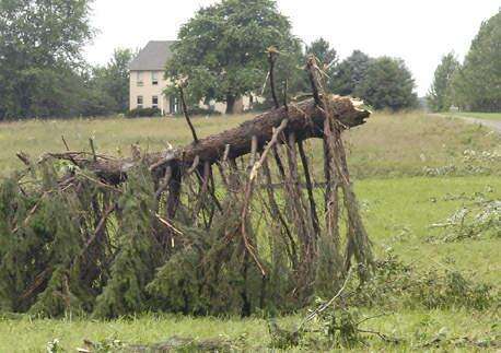 One of several pine trees snapped and hurled from the yard from the Hudkins home on on Route 47. Laura Stoecker | Staff Photographer
