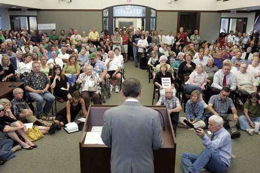 US Rep. Mark Kirk conducts a town hall meeting to discuss health care reform at the Arlington Heights Village Hall Monday afternoon.