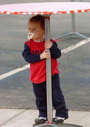 Max Casaccio, age 17 months, plays under a table during the Downtown Palatine Street Fest Saturday. Joe Lewnard | Staff Photographer