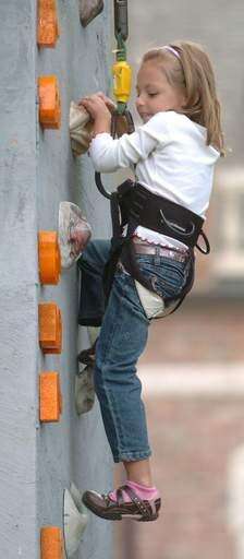 Julia Stakhiv, 51/2, of Palatine reaches the top of the climbing wall during the Downtown Palatine Street Fest Saturday. Joe Lewnard | Staff Photographer