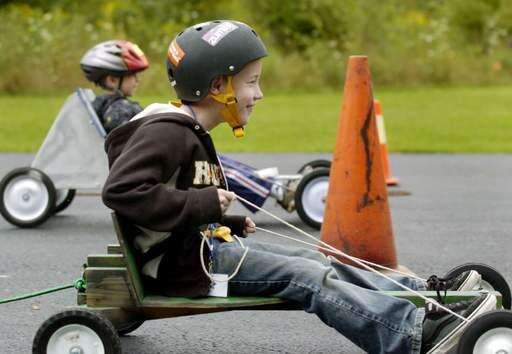 Nne-year-old Chance Rose from Pack 146 of St. Charles,edges out 7-year-old Matt Boeke from Pack 251 of South Elgin during the annual Fox Valley Cubmobile at LeRoy Oakes Forest Preserve in St. Charles. Bob Chwedyk | Staff Photographer