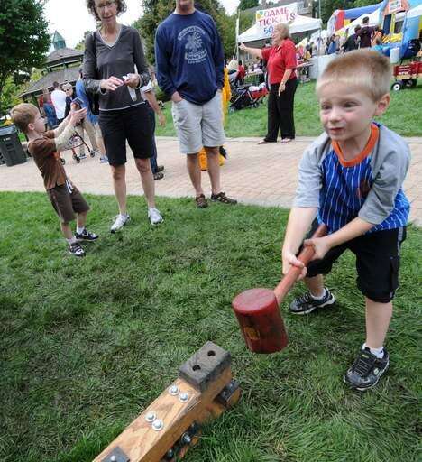 Five-year-old Bryce Cherico tries to "ring the bell" Saturday during the Downtown Palatine Street Fest. Joe Lewnard | Staff Photographer