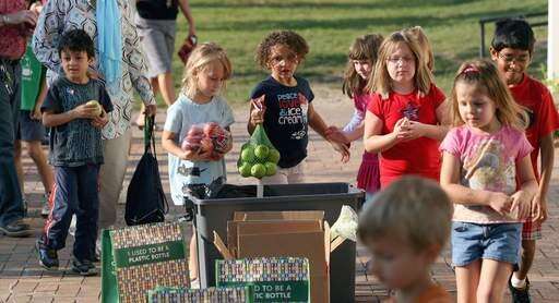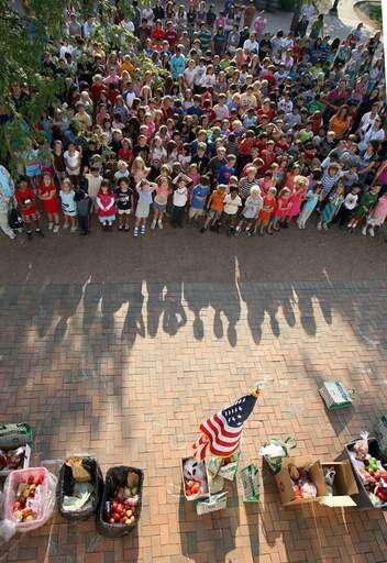 Students at Prairie Crossing Charter School in Grayslake drop off apples as they try to collect 2,998 apples which represent everyone who died or was presumed dead in the 9/11 attacks 8 years ago, Friday morning in Grayslake. Steve Lundy | Staff Photographer