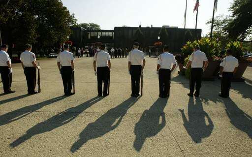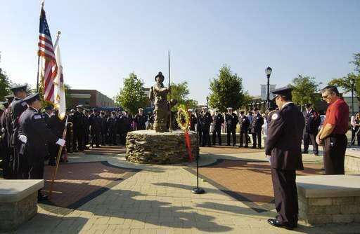 Moment of silence during the Patriot Day Ceremony at the Palatine Firefighters Memorial. Bob Chwedyk | Staff Photographer